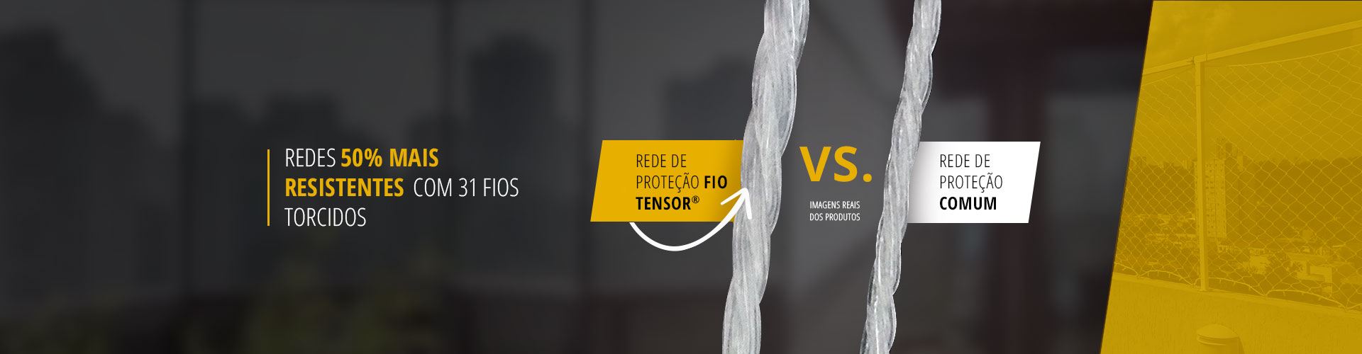 somente a marca FIO TENSOR® oferece redes com 31 fios torcidos. O maior número de fios torcidos do mercado, proporcionando mais segurança, resistência e durabilidade nas Redes de Proteção. Veja a comparação de um produto original FIO TENSOR® em relação a outras marcas e redes comuns.